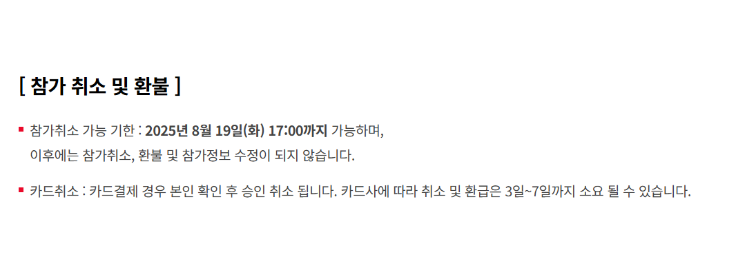 환불 신청은 행사 공지에 명시된 ‘환불 가능 기간’ 내에만 가능합니다. 일반적으로 결제 완료 후 또는 행사일 기준 일정 기간 이전에 신청해야 하며, 그 이후에는 환불 불가 혹은 제한(수수료 공제 등)이 발생할 수 있습니다. 환불은 공식 홈페이지 또는 예매처 마이페이지에서 온라인으로 신청하실 수 있고, 카드 결제의 경우 영업일 기준 며칠의 처리 시간이 소요됩니다.