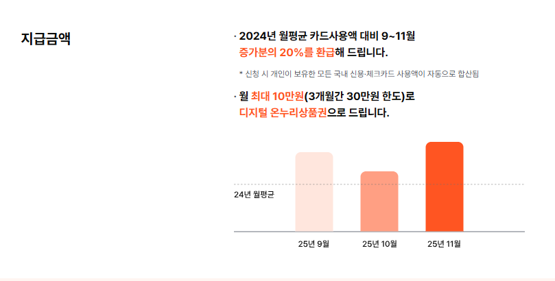 - 월 최대 10만원, 총 3개월 최대 30만원 한도