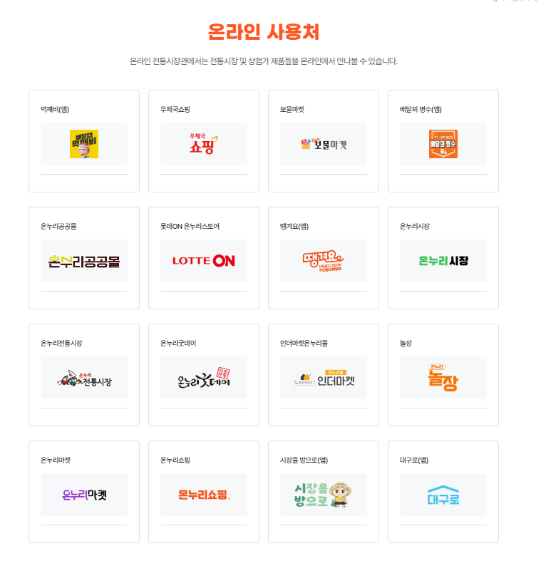 - 온라인 사용처 보기: 온누리상품권 공식 온라인 전통시장관