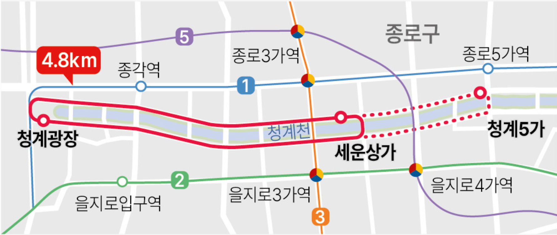 청계천 자율주행셔틀의 운행 구간은 총 4.8km로, 청계광장과 광장시장 사이를 오가며 총 11개 정류소를 운영합니다. 정류소는 주요 거점인 청계광장, 세운상가, 청계 3가, 청계 5가, 동대문역, 광장시장 근처에 위치해 있으며, 왕복 구간이 각각 구성되어 있어 출발지와 도착지가 유연합니다. 모든 정류소에는 셔틀 전용 표시와 QR코드 안내판이 설치되어 있어 쉽게 찾을 수 있으며, GPS 기반 위치 정보도 제공될 예정입니다.